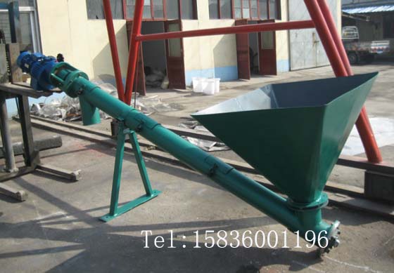 LS型螺旋輸送機是利用旋轉的螺旋將被輸送的物料沿固定的機殼內推移而進行輸送工作,頭部及尾部軸承移至殼體外,吊軸承采用滑動軸承設有防塵密封裝置,軸瓦一般采用粉末冶金,輸送水泥采用毛氈軸瓦,吊軸和螺旋軸采用滑塊連接。
