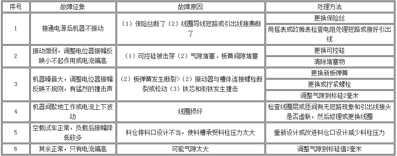 ⑴經常檢查給料槽振幅和線圈電流,注意機器的響聲是否正常,如果發現聲音突然變大,或發現有撞擊聲,要仔細分析原因,并立即停機處理。