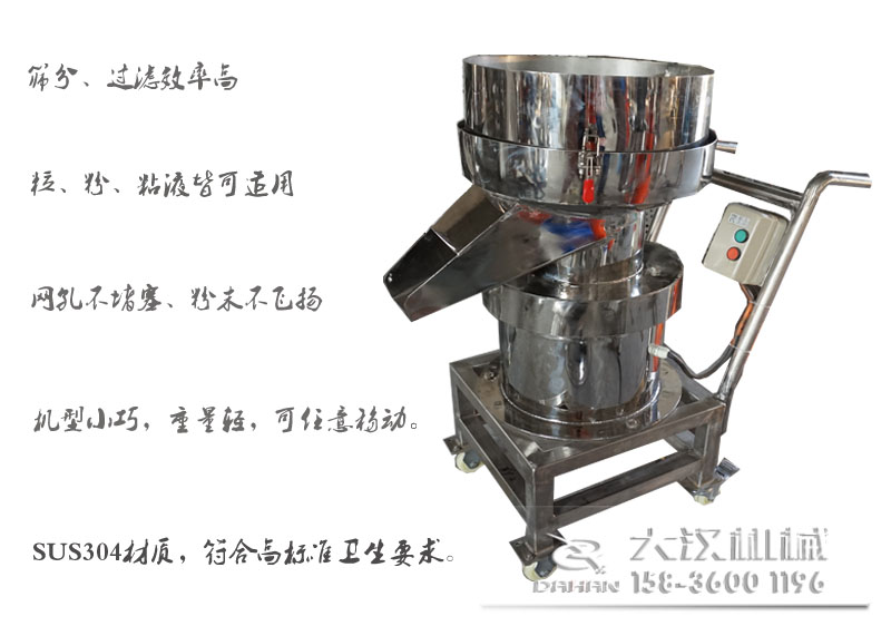 過濾篩是一種適用于各行業(yè)單層,小顆粒、粉、粘液處理生產(chǎn)量小或者雜質(zhì)少物料的振動篩分、過濾設(shè)備。大漢牌推車式450型過濾篩,在原有過濾篩的基礎(chǔ)上,配備了小推車,推車與機身融為一體,使本身機型小巧的450過濾篩移動起來更加的方便,省時省力。